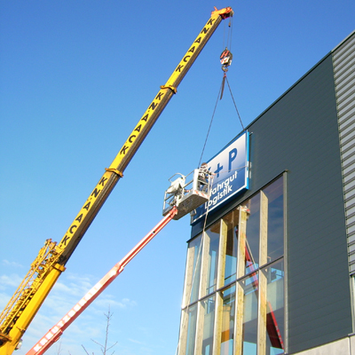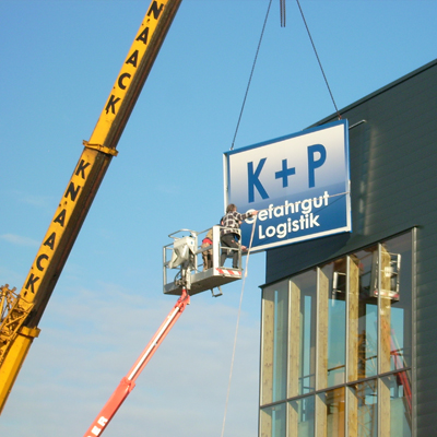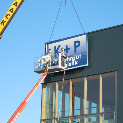Montage der Innen- und Außenbeschilderung - Es handelt sich hierbei um eine umfassende Betreuung des Beschilderungsprojektes inklusive Aushub und Fundamentierungsarbeiten für z.B. größere Außenaufsteller.