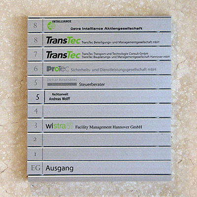 Vor allem in großen Städten wie Hamburg sind auch die Gebäude von stattlicher Größe. Da ist es wichtig, dass sich Besucher, Kunden und Mitarbeiter innerhalb des Hauses durch Gebäudepläne gut zurechtfinden. Aus diesem Grund ist ein gewissenhaft erstellter Gebäudeplan unerlässlich, um einen Überblick über Etagen und Räume zu erlangen. Gebäudepläne von Kettler Design verbinden Übersichtlichkeit und Ästhetik mit der gewohnten Kettler-Qualität und führen so jedermann zu seinem Ziel. So gewinnen Sie einen positiven ersten Eindruck bei Ihren neuen Kunden oder Gästen.