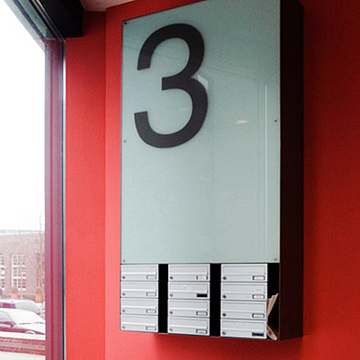 Umbau alter Industrieanlagen - Der Renz Briefkasten wurde durch Kettler Design zum Unikat veredelt. Die Beschilderungsanlagen in passender Bauweise wird zum Einzelstück.