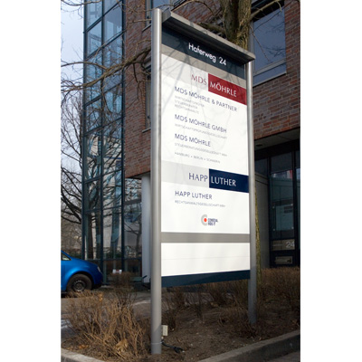 Eine starke Aussenwerbepräsenz - durch auffallende Leuchtbuchstaben, einen Fahnenpark und die hochwertig gestaltete Hinweisbeschilderung. Der erste Eindruck zählt und stimmt hier.