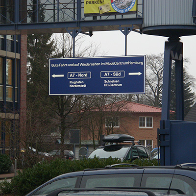 Die Organisation der Modewelt - ein funktionales Wegleit- und Parksystem führt den Besucher zu seiner Bekleidung.