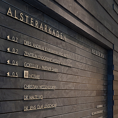 Wir lassen Ihre Buchstaben schweben - dennoch eingefügt in eine Systematik, die den stetigen Wechsel von Mietern problemlos ermöglicht.