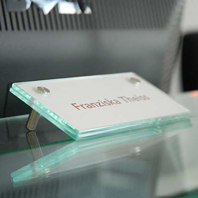 Die kleinen Tischaufsteller kommen in den unterschiedlichsten Farben, Formen oder Materialen daher. Ihrer Kreativität sind hierbei keine Grenzen gesetzt. Wir fertigen Ihren persönlichen Kartenhalter ganz nach Ihrem individuellen Geschmack. So wird Ihr Tischaufsteller zum echten Hingucker. Ob aus Metall oder Kunststoff, mit Logo oder Schriftzug – Kettler Design entwickelt für Sie persönlich den passenden Tischaufsteller. Auch Ihre Mitarbeiter werden sich über ihr eigenes Namensschild am Arbeitsplatz im Design Ihres Unternehmens freuen.